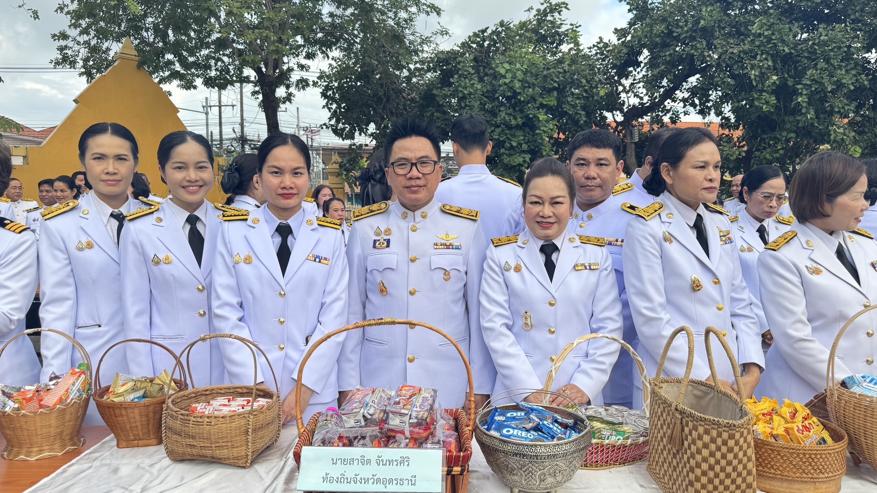 วันจันทร์ที่ 13 ตุลาคม 2568 เวลา 7.00 น นายสาจิต จันทรศิริ ท้องถิ่นจังหวัดอุดรธานี พร้อมด้วย นายวิทูร น้อยน้ำคำ ผู้อำนวยการกลุ่มงานกฎหมายระเบียบและเรื่องร้องทุกข์ และข้าราชการสำนักงานส่งเสริมการปกครองท้องถิ่นอุดรธานี ร่วมพิธีทำบุญตักบาตรถวายพะราชกุศล พิธีวางพวงมาลา ถวายราชสดุดี เนื่องในวัน นวมินทรมหาราช พระบาทสมเด็จพระบรมชนกาธิเบศร มหาภูมิพลอดุลยเดชมหาราช บรมนาถบพิตร ประจําปีพุทธศักราช 2568 ณ หอประชุมทองใหญ่ ศาลากลางจังหวัดอุดรธานี โดยมี นายราชันย์ ซุ้นหั้วผู้ว่าราชการจังหวัดอุดรธานี เป็น ประธาน |