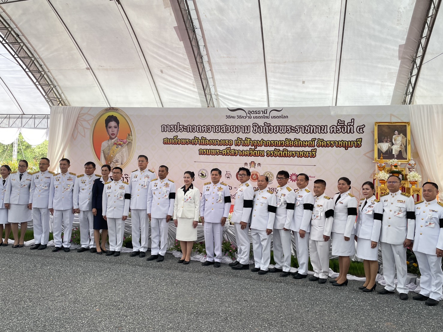 | วันพุธที่ 19 พฤศจิกายน 2568 เวลา 10.00 น นายราชันย์ ซุ้นหั้ว ผู้ว่าราชการจังหวัดอุดรธานี พร้อมด้วย นายสาจิต จันทรศิริ ท้องถิ่นจังหวัด ร่วมรับผู้แทนพระองค์ นายสุรพิทย์ กีรติบุตร รองประธานสถาบันวิจัยจุฬาภรณ์ ฝ่ายวิเทศ สัมพันธ์ ด้วยสมเด็จพระเจ้าน้องนางเธอ เจ้าฟ้าจุฬาภรณวลัยลักษณ์ อัครราชกุมารี กรมพระศรีสวางควัฒน วรขัตติยราชนารี ทรงพระกรุณาโปรดเกล้าให้นายสุรพิทย์ กีรติบุตร รองประธานสถาบันวิจัยจุฬาภรณ์ ฝ่ายวิเทศสัมพันธ์ เป็นผู้แทนพระองค์ไปในพิธีมอบถ้วยรางวัลชนะเลิศการประกวดควายสวยงามจังหวัดอุดรธานี ครั้งที่ 4 ประจำปี 2568 ณ พื้นที่โคกหนองโกสาธารณะ ตำบลทุ่งใหญ่ อำเภอทุ่งฝน จังหวัดอุดรธานี |