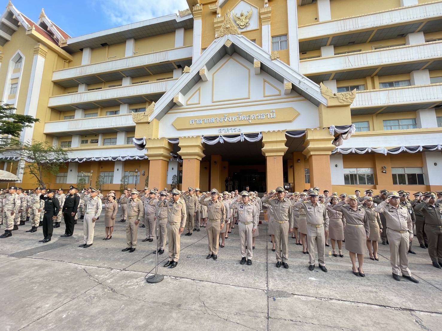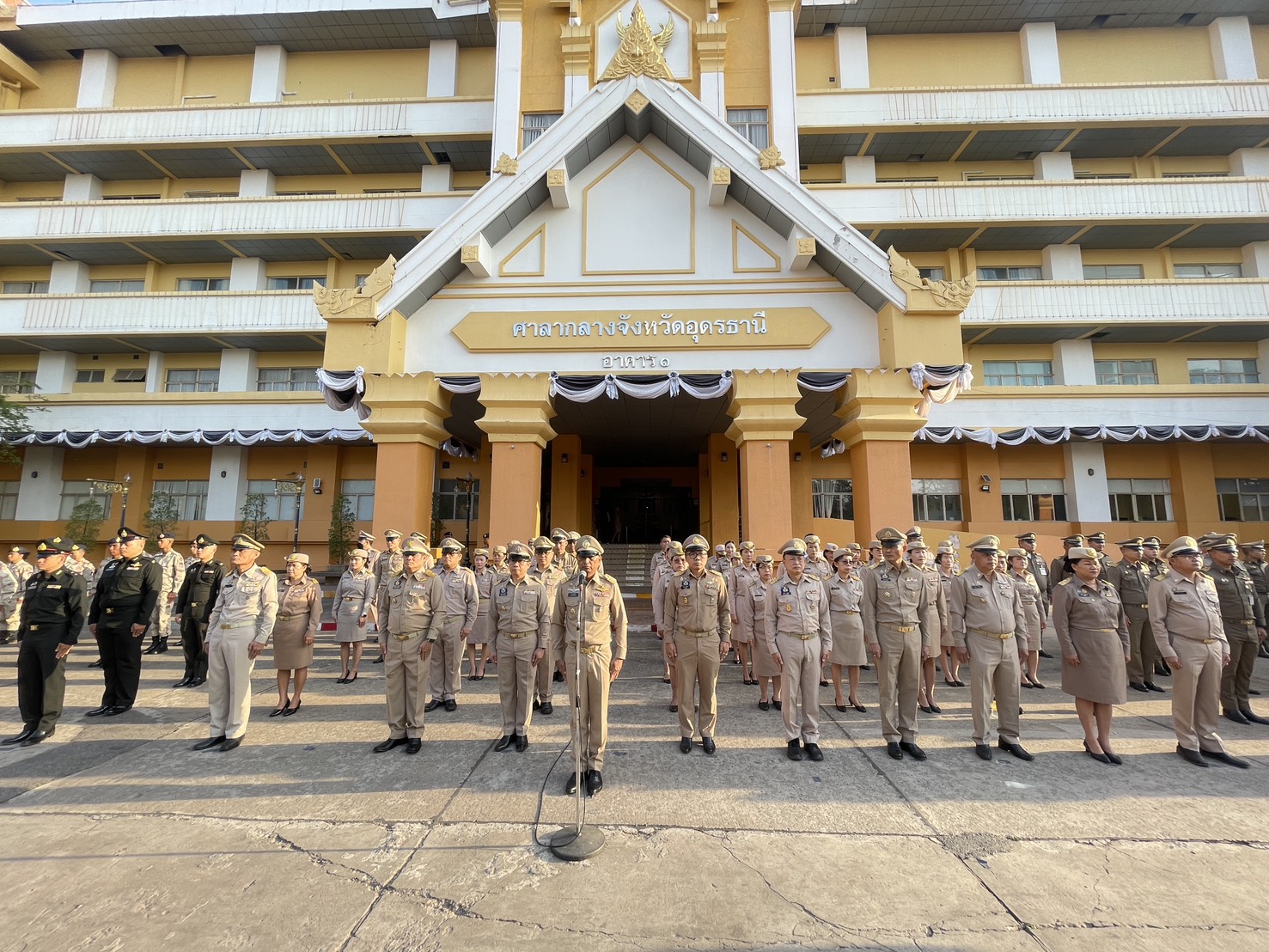 วันจันทร์ที่ 26 มกราคม 2569 เวลา 8.00 น. นายสาจิต  จันทรศิริ ท้องถิ่นจังหวัด พร้อมด้วย ผอ.ทุกกลุ่มงาน หัวหน้าฝ่ายบริหารทั่วไป และข้าราชการสำนักงานส่งเสริมกปกครองท้องถิ่นอุดรธานี  ร่วมกิจกรรม เคารพธงชาติและร้องเพลงชาติไทย ประจำปีพุทธศักราช 2569 ณ บริเวณหน้าเสาธงศาลากลางจังหวัด โดยมี  นายราชันย์ ซุ้นหั้ว ผู้ว่าราชการจังหวัดอุดรธานี เป็นประธาน