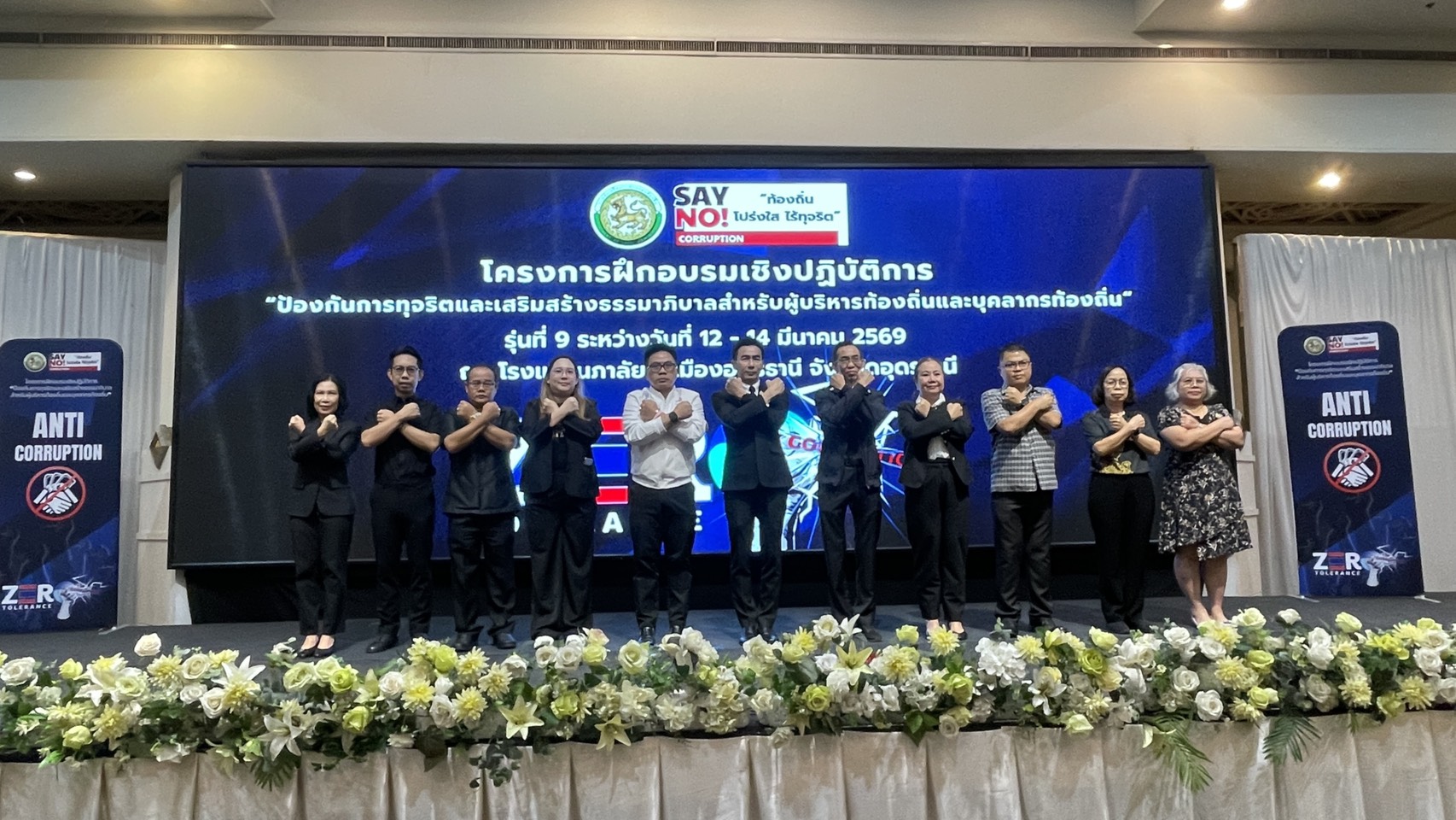 | วันพฤหัสบดีที่ 12 มีนาคม 2569 เวลา 9.30 น นายสาจิต จันทรศิริ ท้องถิ่นจังหวัด / ผอ.กลุ่มงาน และ หัวหน้าฝ่ายบริหารทั่วไป สำนักงานส่งเสริมการปกครองท้องถิ่นอุดรธานี ร่วมเป็นเกียรติ โครงการฝึกอบรมเชิงปฏิบัติการป้องกันการทุจริตและเสริมสร้างธรรมาภิบาลสำหรับผู้บริหารท้องถิ่นและบุคลากรท้องถิ่น รุ่นที่ 9 โดยมีผู้เข้าร่วมอบรมจาก 5 จังหวัด ได้แก่ หนองคาย/ นครพนม /สกลนคร ขอนแก่น/ มุกดาหาร ณ โรงแรมนภาลัย อ.เมืองอุดรธานี โดยมี นายประเสริฐ สุภัครพงษ์กุล ผู้อำนวยการสถาบันพัฒนาบุคลากรท้องถิ่น เป็นผู้กล่าวรายงาน และมี นายธนนท์ พรรพีภาส รองอธิบดีกรมส่งเสริมการปกครองท้องถิ่น เป็น ประธาน |