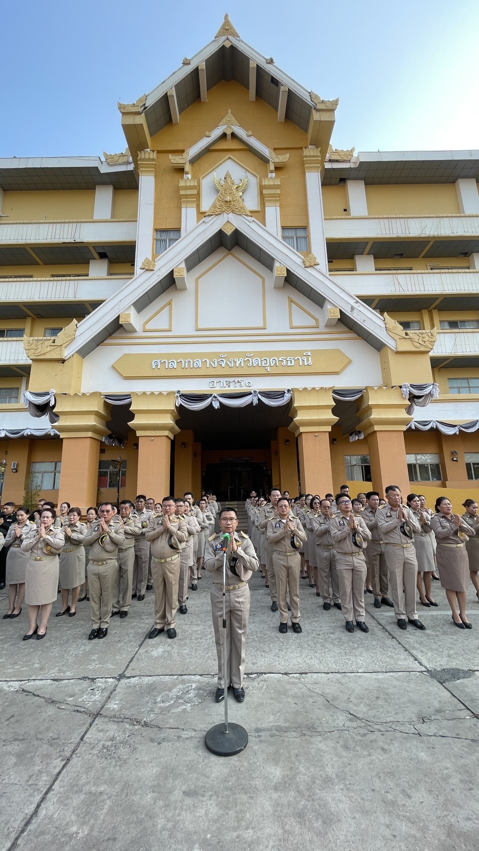| วันจันทร์ที่ 30 มีนาคม 2569 เวลา 8.00 น. นายสาจิต จันทรศิริ ท้องถิ่นจังหวัด พร้อมด้วย ผอ.กลุ่มงาน / หัวหน้าฝ่ายบริหารทั่วไป และข้าราชการสำนักงานส่งเสริมการปกครองท้องถิ่นอุดรธานี ร่วมกิจกรรม เคารพธงชาติและร้องเพลงชาติไทย ประจำปีพุทธศักราช 2569 ณ บริเวณหน้าเสาธงศาลากลางจังหวัด โดยมี นายณัฐพงศ์ คำวงศ์ปิน รองผู้ว่าราชการจังหวัดอุดรธานี เป็นประธาน |