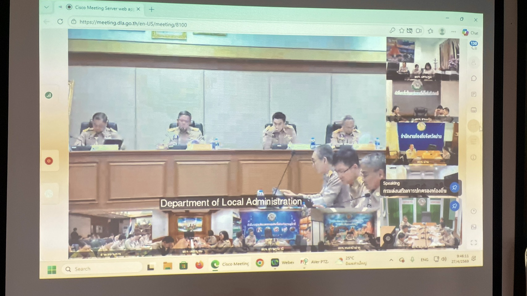 | วันจันทร์ที่ 27 เมษายน 2569 เวลา 9.30 น. ณ ห้องประชุมท้องถิ่น ชั้น 2 อาคาร 2 ศาลากลางจังหวัด นายสาจิต จันทรศิริ ท้องถิ่นจังหวัด /มอบหมายให้ ผอ.กลุ่มงาน /หัวหน้าฝ่ายบริหารทั่วไป และข้าราชการสำนักงานท้องถิ่นอุดรธานี ร่วมประชุมกรมส่งเสริมการปกครองท้องถิ่นประจำปีงบประมาณ พ.ศ. 2569 ครั้งที่ 8 /2569 ผ่านเครือข่ายอินเทอร์เน็ต(Cisco Meeting ) ส่งสัญญาณจากส่วนกลางพร้อมกันทั่วประเทศ จาก ห้องประชุม 5501 อาคาร 5 ชั้น 5 กรมส่งเสริมการปกครองท้องถิ่น โดยมี นายธีรุตม์ ศุภวิบูลย์ผล อธิบดีกรมส่งเสริมการปกครองท้องถิ่น เป็นประธาน |