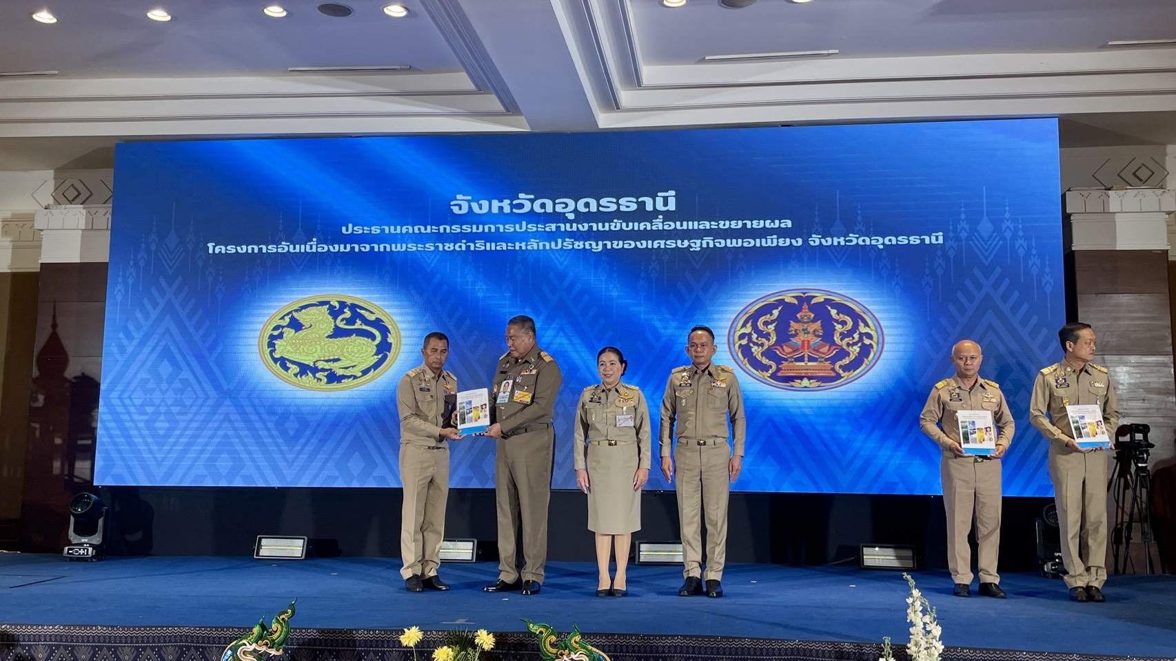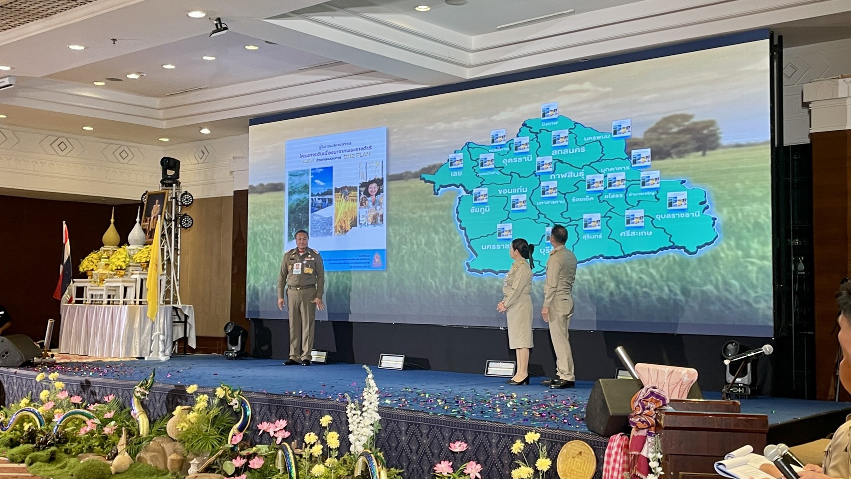 | วันพุธที่ 29 เมษายน 2569 เวลา 10.00 น นายธนนท์ พรรพีภาส รองอธิบดีกรมส่งเสริมการปกครองท้องถิ่น พร้อมด้วย นายสาจิต จันทรศิริ ท้องถิ่นจังหวัด ร่วมพิธีเปิดงานการนำคู่มือการบริหารจัดการโครงการอันเนื่องมาจากพระราชดําริเชิงพื้นที่ด้วยกระบวนการ One Plan มาสนับสนุนการดําเนินงานโครงการอันเนื่องมาจากพระราชดําริเขตพื้นที่ภาคตะวันออกเฉียงเหนือ จังหวัดอุดรธานี “ถอดบทเรียนความสําเร็จการบริหารจัดการโครงการอันเนื่องมาจากพระราชดําริเชิงพื้นที่ด้วยกระบวนการ OnePlan “ ณ ห้องประชุมทุ่งศรีเมือง โรงแรมเซ็นทารา โดยมี นายราชันย์ ซุ้นหั้ว ผู้ว่าราชการจังหวัด เป็นผู้กล่าวรายงานต่อ นายพลากร สุวรรณรัฐ องคมนตรี |