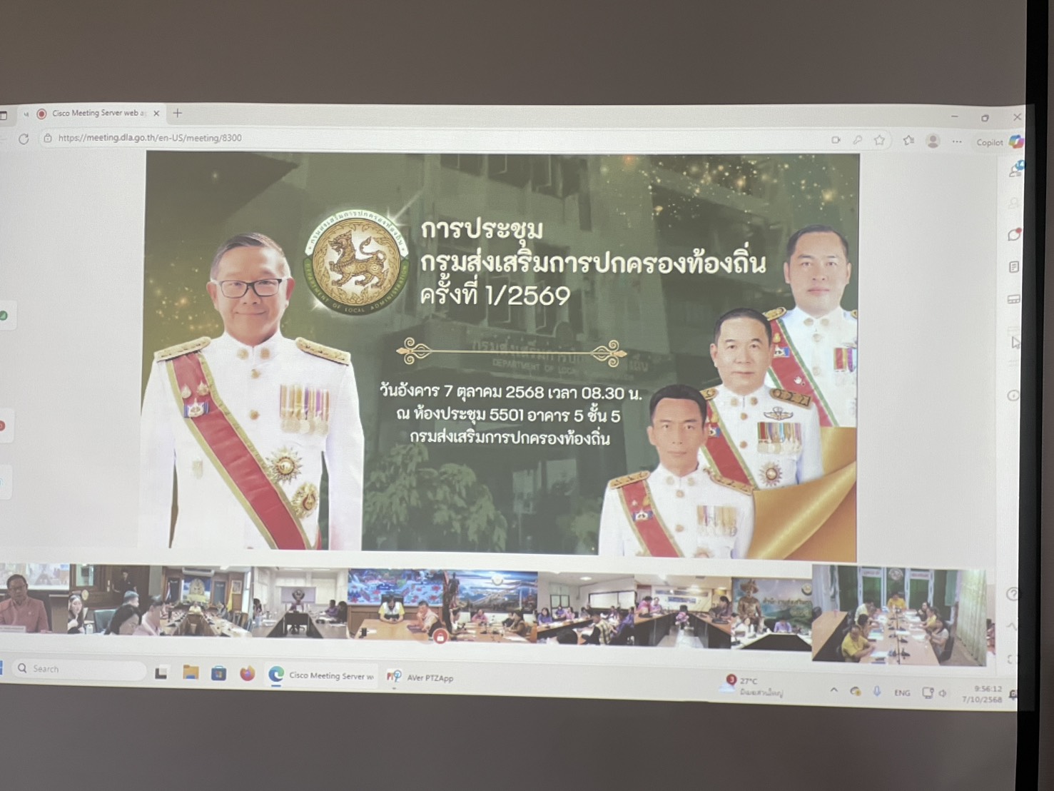 | วันอังคารที่ 7 ตุลาคม 2568 เวลา 8.30 น. ณ ห้องประชุมท้องถิ่น ชั้น 2 อาคาร 2 ศาลากลางจังหวัดอุดรธานี นายสาจิต จันทรศิริ ท้องถิ่นจังหวัดอุดรธานี พร้อมด้วยผู้อำนวยการ ทุกกลุ่มงาน หัวหน้าฝ่ายบริหารทั่วไป เข้าร่วมประชุมกรมส่งเสริมการปกครองท้องถิ่นประจำปีงบประมาณ พ.ศ. 2569 ครั้งที่ 1/2569 ผ่านเครือข่ายอินเทอร์เน็ต(Cisco Meeting ) ส่งสัญญาณจากส่วนกลางพร้อมกันทั่วประเทศ จาก ห้องประชุม 5501 อาคาร 5 ชั้น 5 กรมส่งเสริมการปกครองท้องถิ่น โดยมี ร.ต.ท ภพชนก ชลานุเคราะห์ อธิบดีกรมส่งเสริมการปกครองท้องถิ่น เป็นประธาน |