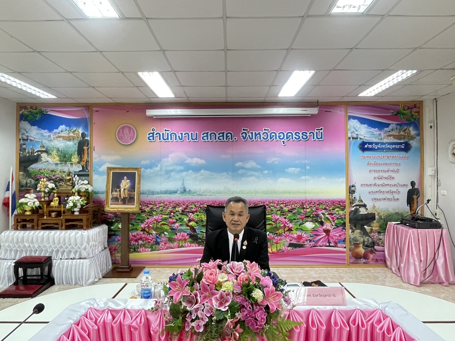ณ ห้องประชุมคำชะโนด ชั้น 2 สำนักงาน สกสค.จังหวัดอุดรธานี โดยมี นายเฉลิมชัย แสนมหาชัย ศึกษาธิการจังหวัดอุดรธานี เป็นประธาน |