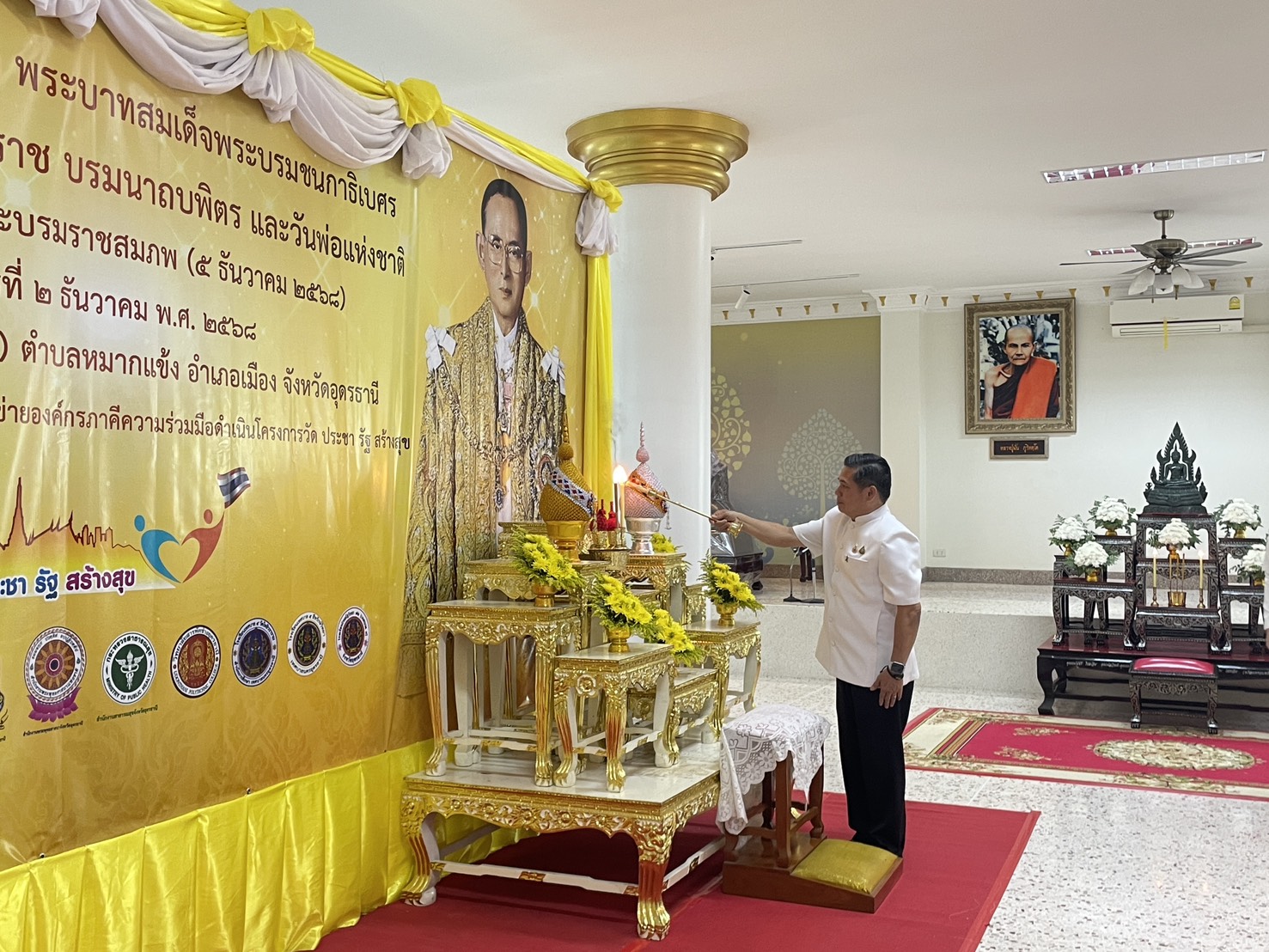 | วันอังคารที่ 2 ธันวาคม 2568 เวลา 9.00 น. นายสาจิต จันทรศิริ ท้องถิ่นจังหวัด พร้อมด้วย นายวิทูร น้อยน้ำคำ ผู้อำนวยการกลุ่มงานกฎหมายระเบียบและเรื่องร้องทุกข์ ข้าราชการ สำนักงานส่งเสริมการปกครองท้องถิ่นอุดรธานี ร่วมกิจกรรมเฉลิมพระเกียรติ พระบาทสมเด็จพระบรมชนกาธิเบศร มหาภูมิพลอดุลยเดชมหาราช บรมนาถบพิตร วันชาติ และวันพ่อแห่งชาติ เนื่องในโอกาสวันคล้ายวันพระบรมราชสมภพ (5 ธันวาคม 2568 ) ณ ศาลาสถิตธรรมวิสุทธิ์ (ถิร ฐิตธมฺโม) วัดทิพยรัฐนิมิตร (วัดบ้านจิก) ตำบลหมากแข้ง อำเภอเมือง จัดโดย เทศบาลนครอุดรธานี ร่วมกับ เครือข่ายองค์กรภาคีความร่วมมือดำเนินโครงการวัด ประชา รัฐ สร้างสุข โดยมี นายพิสิษฐ์ชัย อภัยปิยกุล. รองผู้ว่าราชการจังหวัดอุดรธานี เป็นประธาน |