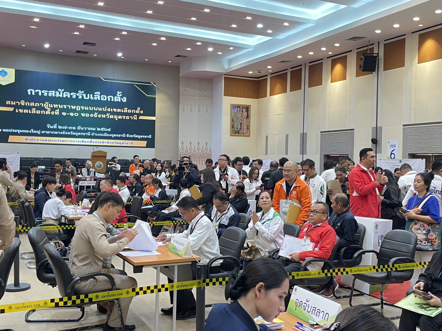 | วันเสาร์ที่ 27 ธันวาคม 2568 เวลา 8.30 น นายสาจิต จันทรศิริ ท้องถิ่นจังหวัด ในฐานะคณะกรรมการการเลือกตั้งประจำเขตเลือกตั้ง ที่ 1 ร่วมสังเกตการณ์ การสมัครรรับเลือกตั้ง สมาชิกสภาผู้แทนราษฎรใหม่เป็นการเลือกตั้งทั่วไป พ.ศ 2568 แบบเเบ่งเขต ของจังหวัดอุดรธานี ณ หอประชุมทองใหญ่ ศาลากลางจังหวัด โดยมี นายราชันย์ ซุ้นหั้ว ผู้ว่าราชการจังหวัดอุดรธานี เป็นประธาน |