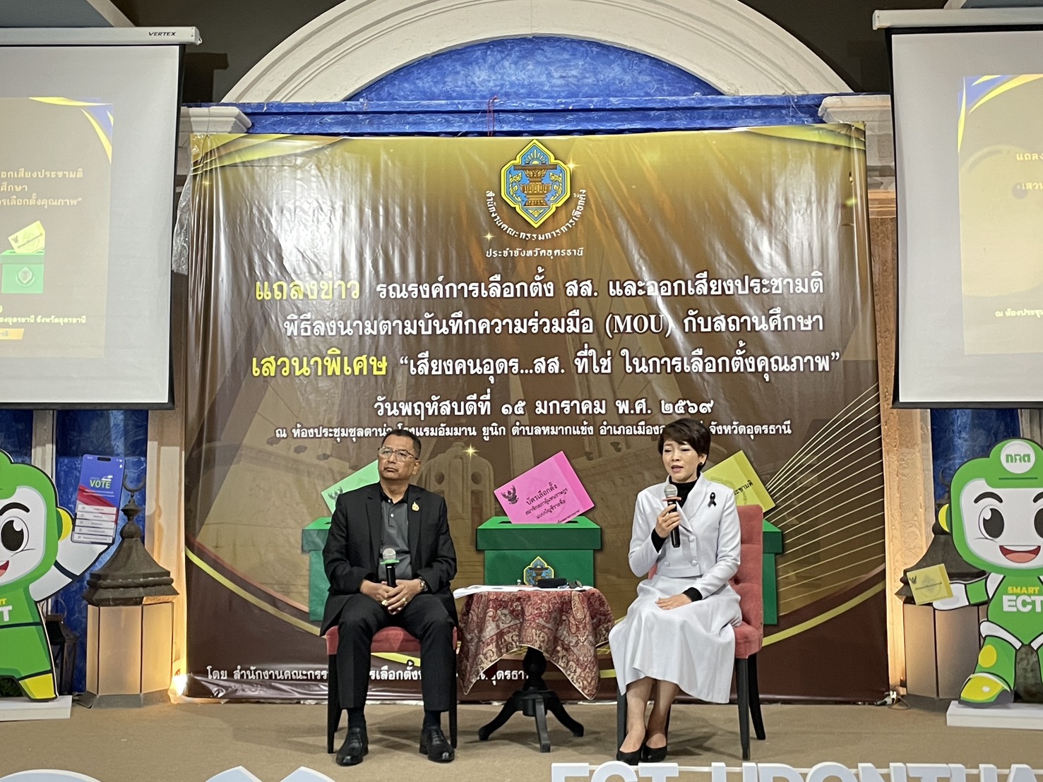 | วันพฤหัสบดีที่ 15 มกราคม 2568 เวลา 9.00 น. นายสาจิต จันทรศิริ ท้องถิ่นจังหวัด ในฐานะกรรมการ การเลือกตั้ง ประจำเขต เลือกตั้งที่ 1 ร่วมแถลงข่าวประชาสัมพันธ์การเลือกตั้งสมาชิกสภาผู้แทนราษฎรและการออกเสียงประชามติกิจกรรม กกต. อุดรธานี พบสื่อมวลชน และภาคีเครือข่ายรณรงค์การเลือกตั้ง ณ ห้องประชุมชุลตาน่า โรงแรมอัมมาน ยูนิก จัดโดย สำนักงานคณะกรรมการการเลือกตั้ง จังหวัดอุดรธานี โดยมี นายราชันย์ ซุ้นหั้ว ผู้ว่าราชการจังหวัด เป็นประธาน |