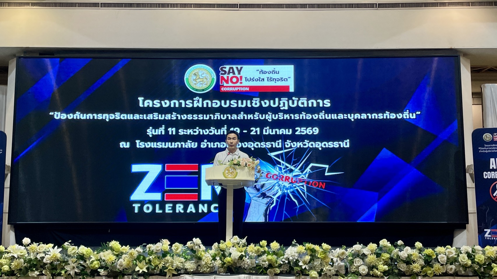 | วันพฤหัสบดีที่ 19 มีนาคม 2569 เวลา 10.00 น นายสาจิต จันทรศิริ ท้องถิ่นจังหวัด / ผอ.กลุ่มงาน และ หัวหน้าฝ่ายบริหารทั่วไป สำนักงานส่งเสริมการปกครองท้องถิ่นอุดรธานี ร่วมเป็นเกียรติ โครงการฝึกอบรมเชิงปฏิบัติการป้องกันการทุจริตและเสริมสร้างธรรมาภิบาลสำหรับผู้บริหารท้องถิ่นและบุคลากรท้องถิ่น รุ่นที่ 11 กลุ่มภาคอีสาน ตอนล่าง ณ โรงแรมนภาลัย อำเภอเมืองอุดรธานี โดยมี นายประเสริฐ สุภัครพงษ์กุล ผู้อำนวยการสถาบันพัฒนาบุคลากรท้องถิ่น เป็นผู้กล่าวรายงาน และมี นายธนนท์ พรรพีภาส รองอธิบดีกรมส่งเสริมการปกครองท้องถิ่น เป็น ประธาน |