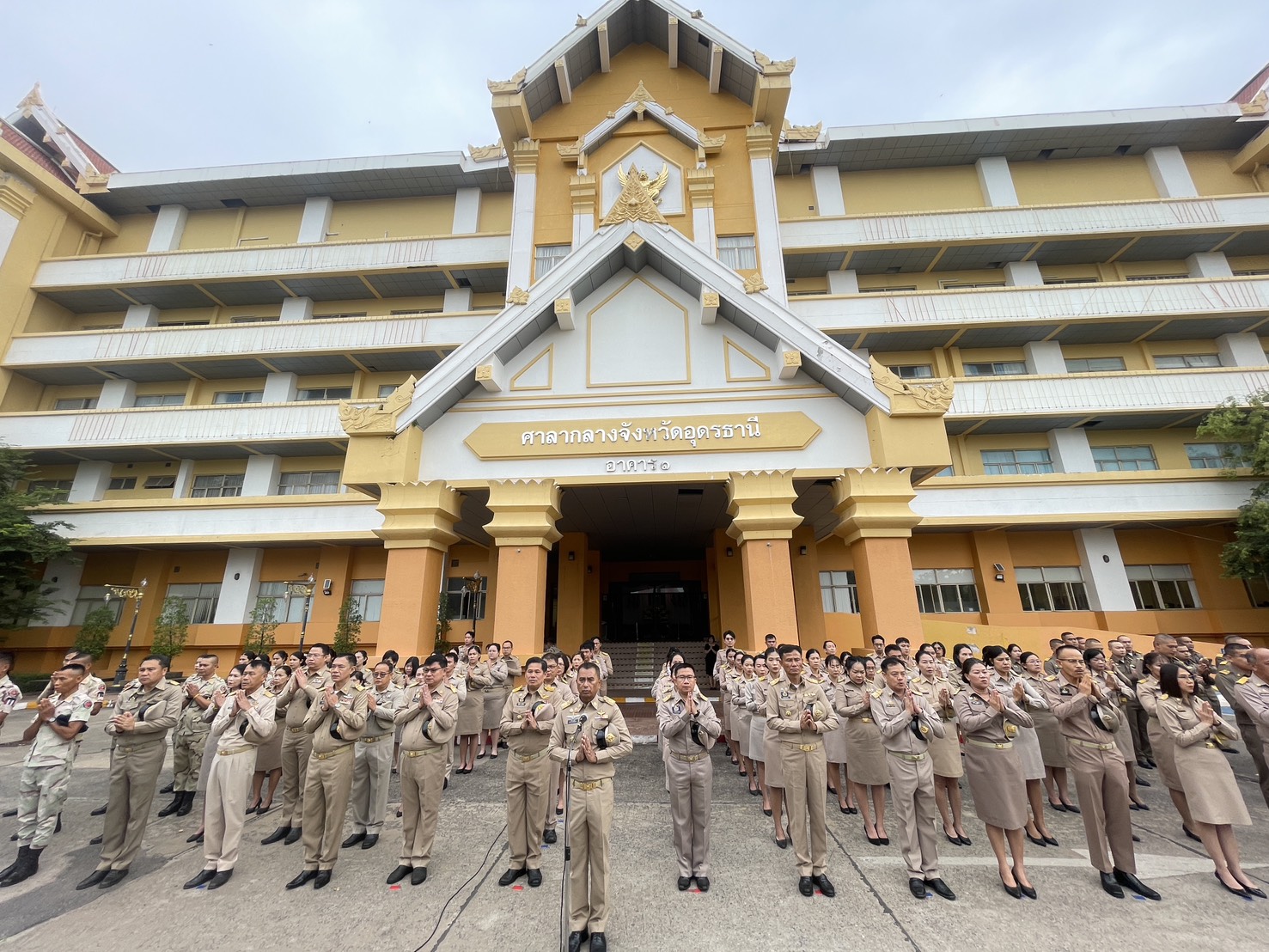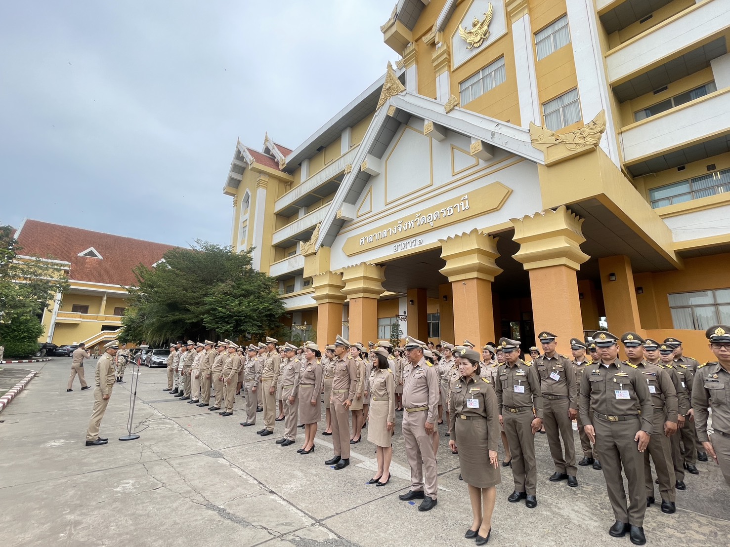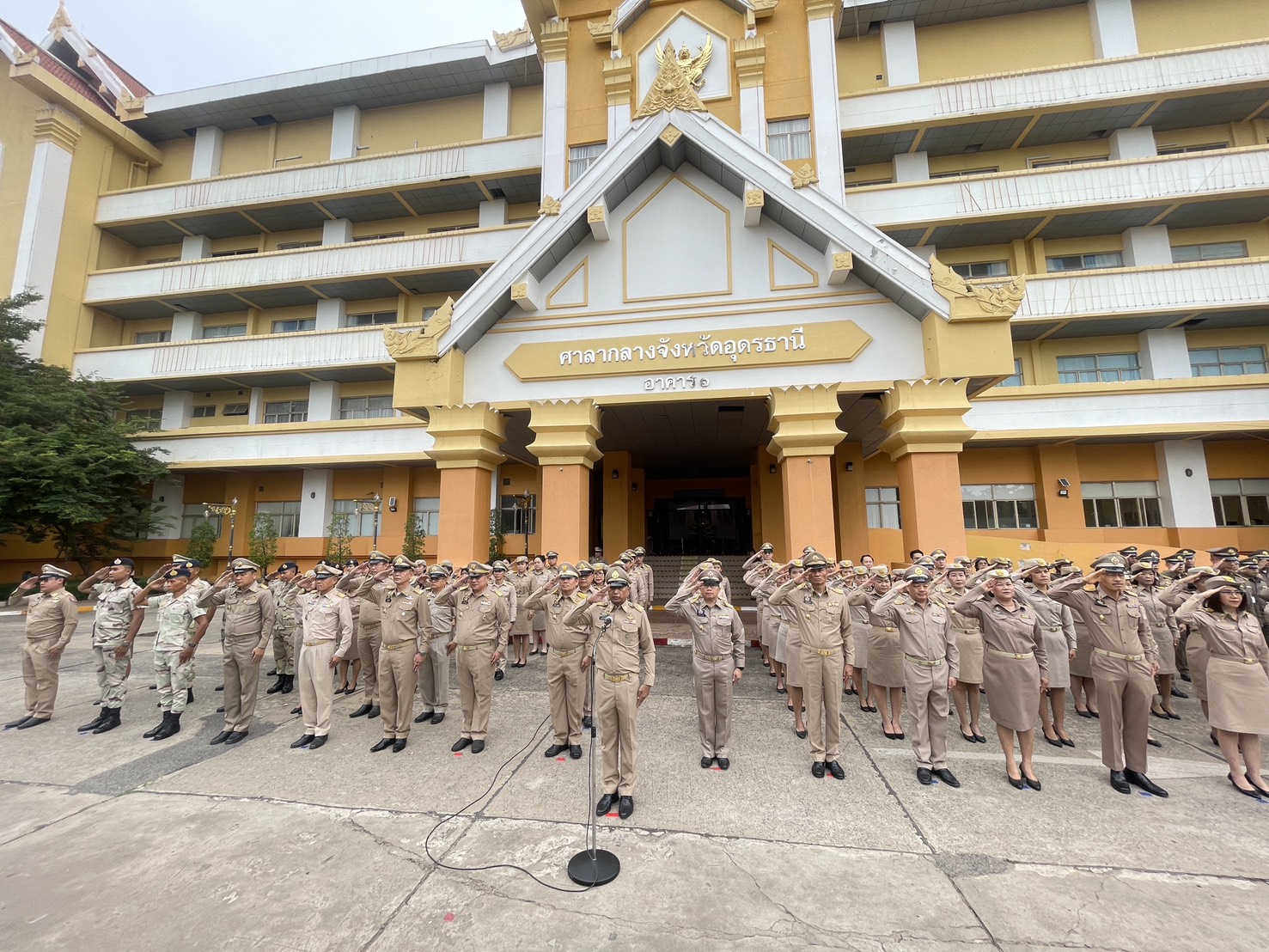 | วันจันทร์ที่ 27 ตุลาคม 2568 เวลา 7.50 น. นายสาจิต จันทรศิริ ท้องถิ่นจังหวัดอุดรธานี มอบหมายให้ ผอ.ทุกกลุ่มงาน หัวหน้าฝ่ายบริหารทั่วไป ข้าราชการและเจ้าหน้าที่ สำนักงานส่งเสริมการปกครองท้องถิ่นอุดรธานี ร่วมกิจกรรม เคารพธงชาติและร้องเพลงชาติไทย ประจำปีพุทธศักราช 2568 ณ บริเวณหน้าเสาธงศาลากลางจังหวัดอุดรธานี โดยมี นายราชันย์ ซุ้นหั้ว ผู้ว่าราชการจังหวัดอุดรธานี เป็นประธาน |